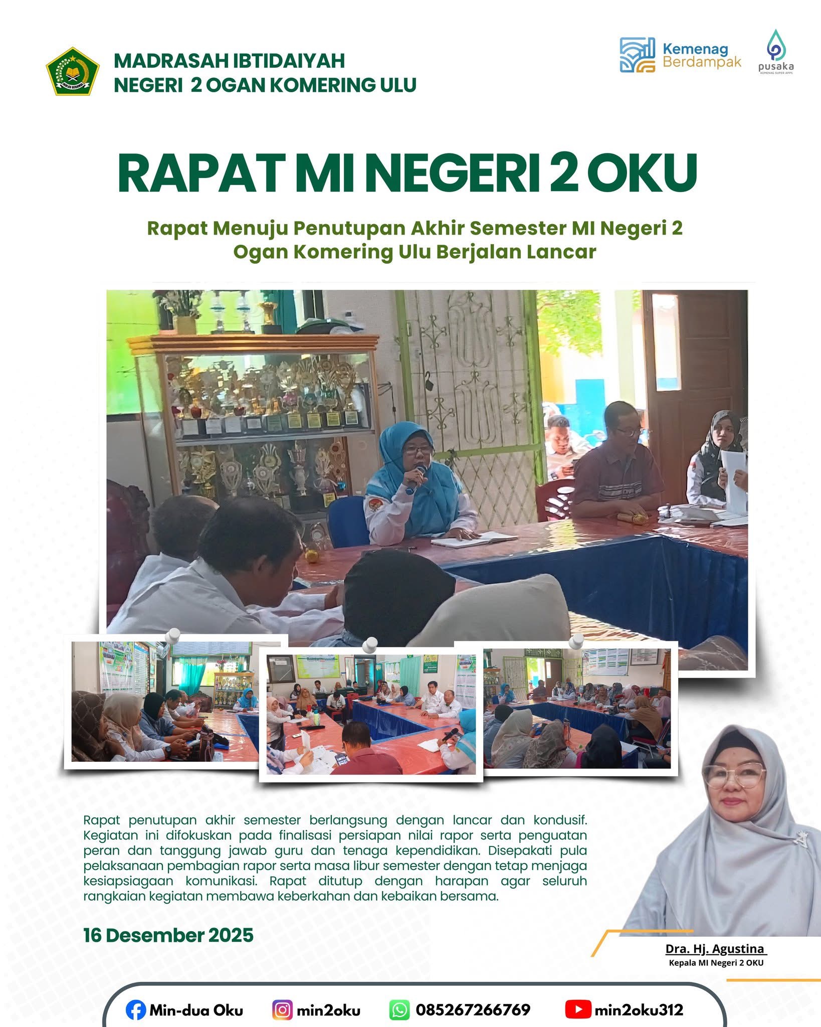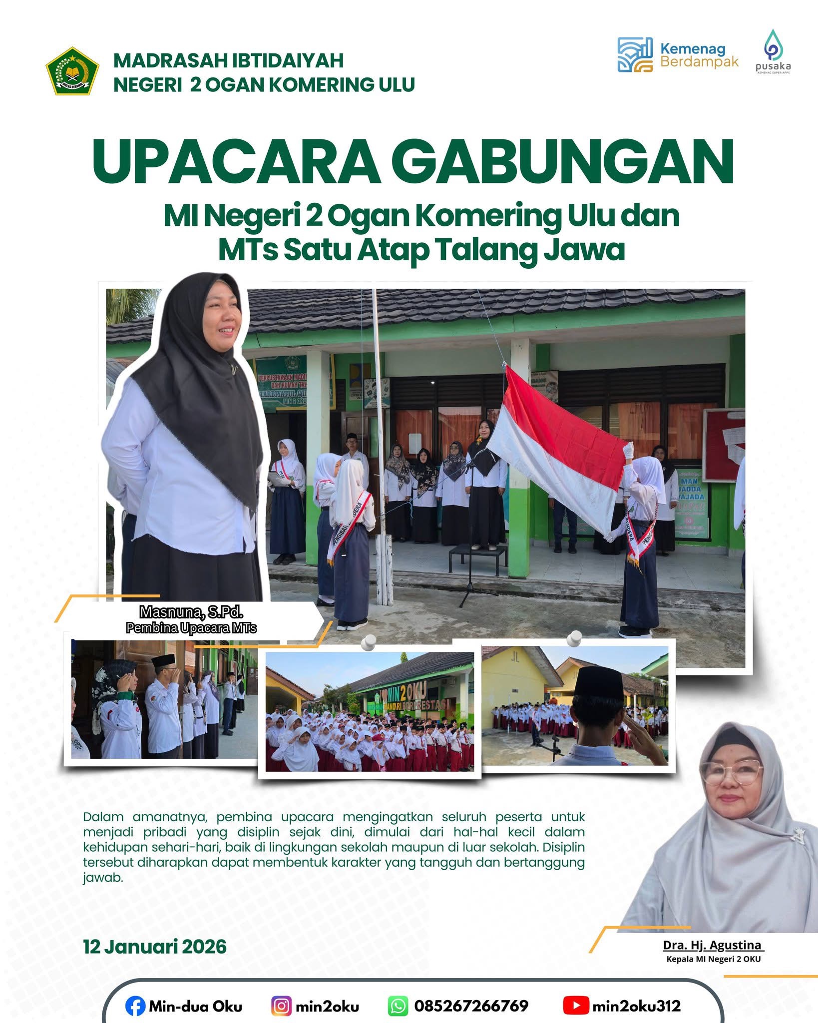 Ceramah agama dalam rangka Peringatan Isra' Mi'raj Nabi Muhammad SAW disampaikan oleh Sukron, S.Ag. Dalam ceramahnya, beliau menekankan pentingnya memahami makna Isra' Mi'raj sebagai momentum penguatan keimanan, peningkatan kualitas ibadah, serta pembentukan akhlak mulia dalam kehidupan sehari-hari.
